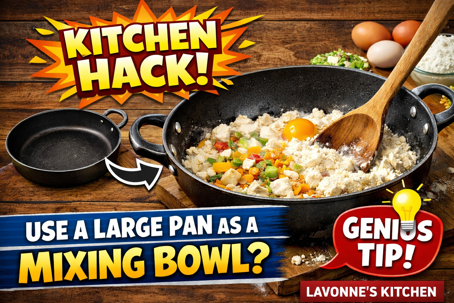Kitchen Hack: Using a Large Pan as a Mixing Bowl